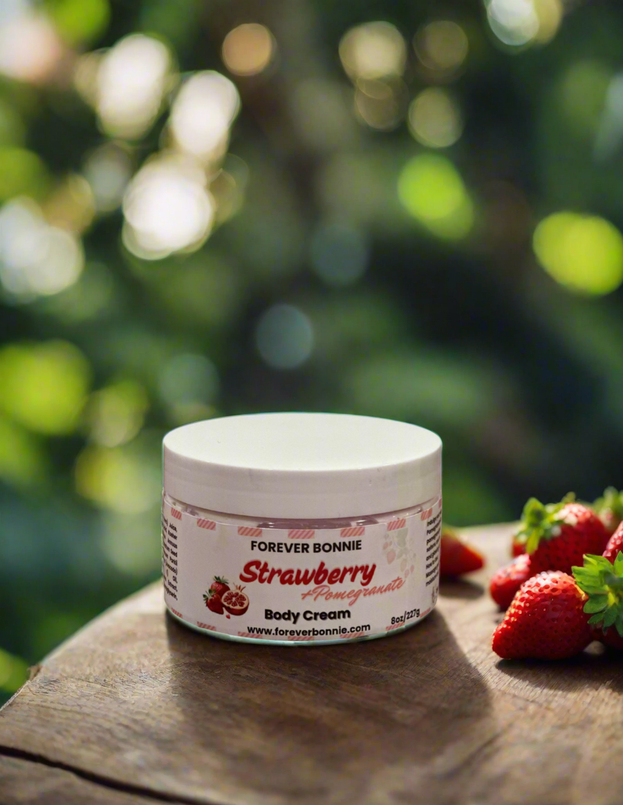 Treat your skin to the ultimate moisture experience with our Strawberry & Pomegranate Body Cream. Crafted with a rich blend of Aloe Vera Juice, Shea Butter, Sunflower Seed Oil, Avocado Oil, and the antioxidant powers of Pomegranate Seed Oil, this cream is designed to deeply hydrate, soften, and rejuvenate. Infused with Irish Sea Moss Extract and Vitamin E, it supports healthy, radiant skin with a touch of irresistible Strawberry Macaron fragrance.